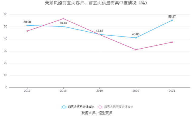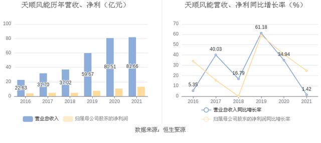 数据统计显示,天顺风能近三年净利润复合年增长率为40.75%,在风电零部件行业已披露2021年数据的6家公司中排名第4。