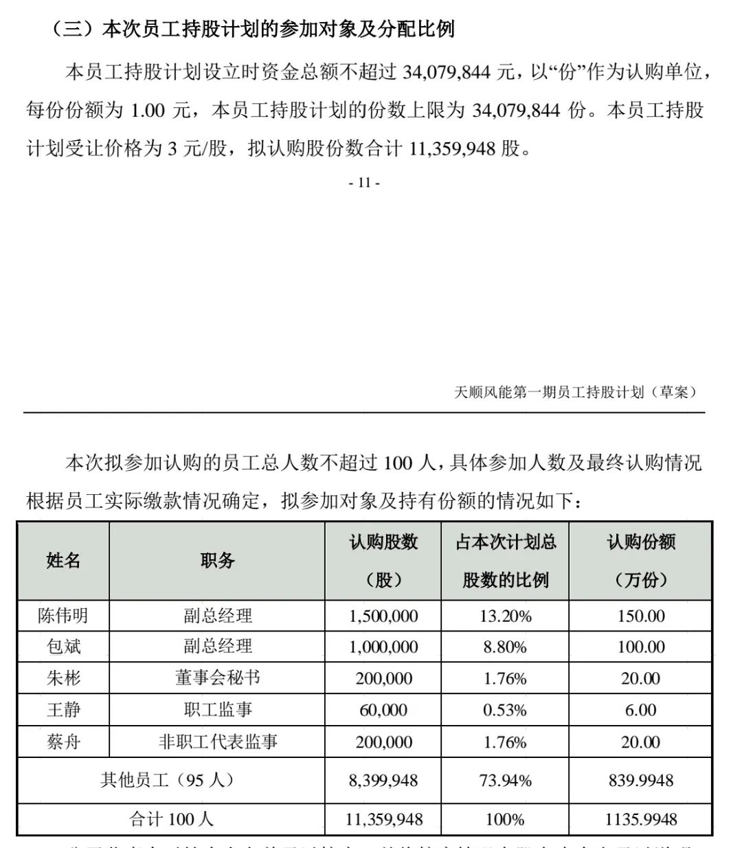 从朱彬入职至今,天顺风能一共搞了两次员工持股计划,朱彬都参与了。