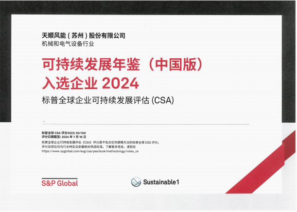 7月16日,公司连续2年入选机械和电气设备行业标普全球可持续发展年鉴(中国版),领先全球94%的同业企业。