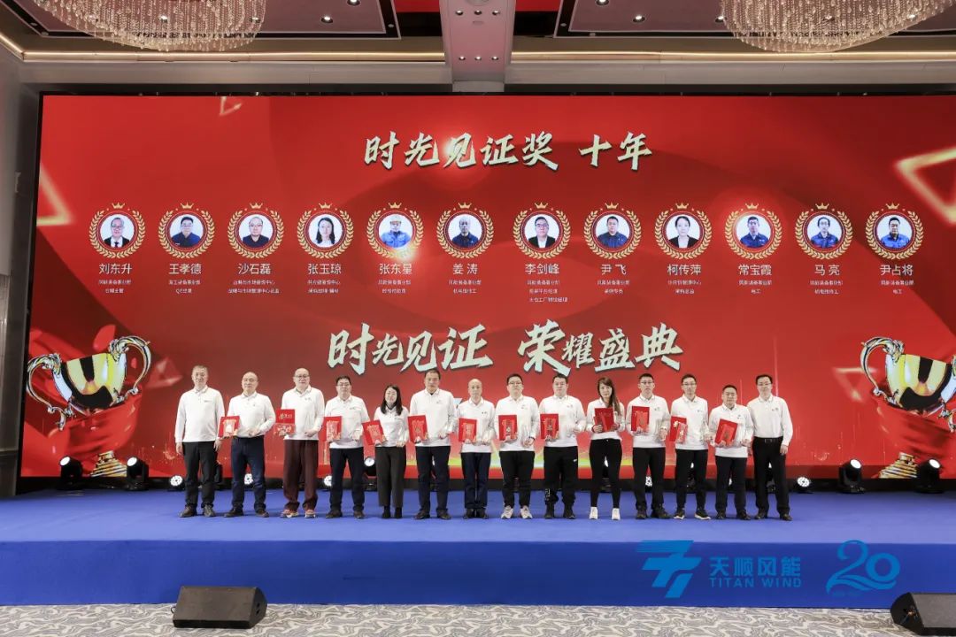 紧随其后,“时光见证荣耀”颁奖盛典璀璨启幕,特别对司龄满 10 年、15 年的员工予以嘉奖,他们与天顺携手同行、共同成长,成就彼此。