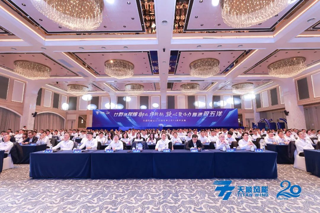 2025 年 1 月 18 日,“廿载铸辉煌,御风启新航;凝心聚伟力,踏浪驭五洋”天顺风能成立二十周年暨上市十五周年庆典,于太仓圆满举行。集团总部、海工装备事业部、风能装备事业部、零碳实业事业部、海外事业部共 400 余名伙伴齐聚一堂,共同擘画天顺风能 2025 年宏伟发展蓝图。