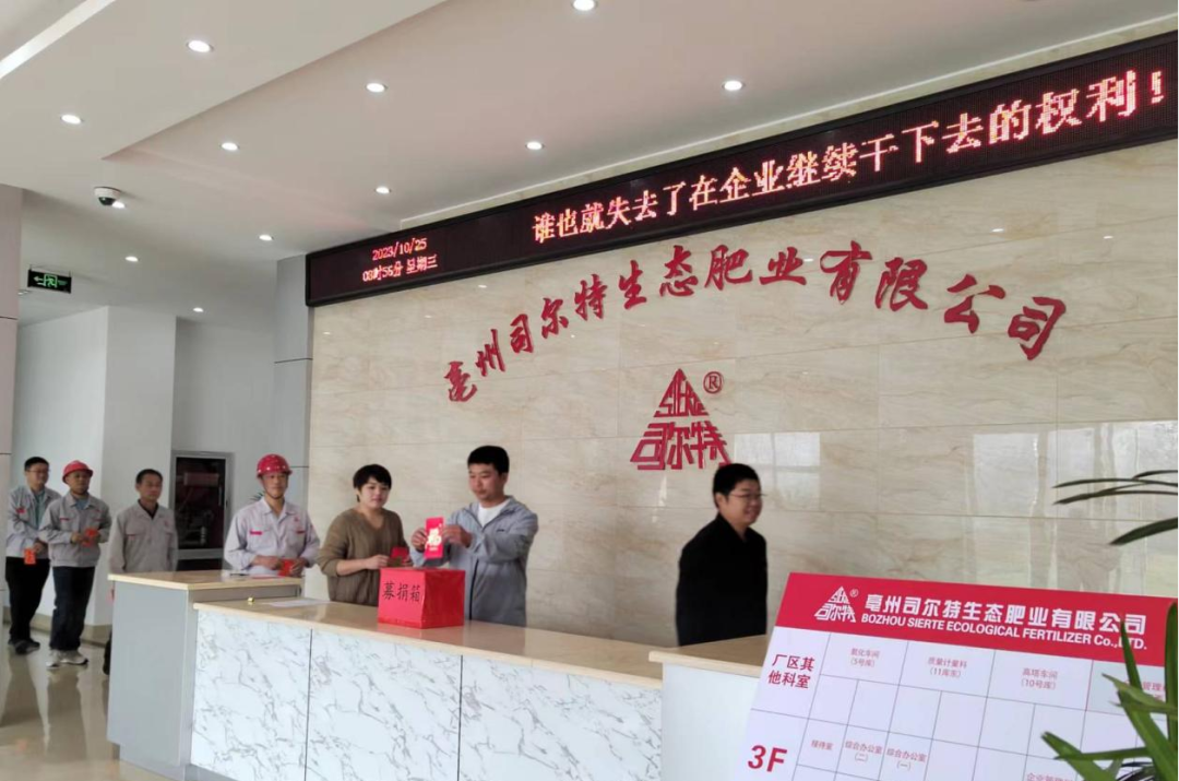 倡议书发出后,各部门积极响应,纷纷伸出援助之手,共募得爱心款12740元。10月25日上午,亳州司尔特党支部宣传委员汤海侯、组织委员罗贤德代表公司党支部和全体员工将爱心款送到韩传霖的手中,并祝愿韩传霖的母亲早日战胜病魔。