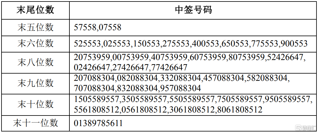亚太科技(002540.SZ)披露向不特定对象发行可转换公司债券中签号码,具体如下: