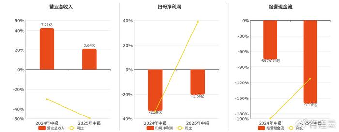公司营业总收入为3.64亿元。归母净利润为-1.58亿元,较去年同报告期归母净利润增加1.01亿元。经营活动现金净流入为-1.15亿元。