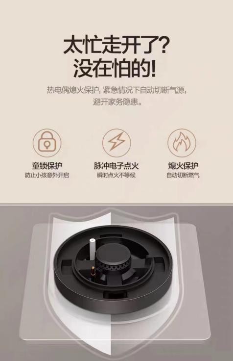 此外,万和电气的燃气灶在安全性设计上达到了新高度。旗下防干烧与定时灶具系列产品通过在产品内部配备了微电脑控制核心,支持长达239分钟的精准定时设置,满足用户多样化的烹饪需求。同时,热电偶熄火保护功能能够在意外情况下自动切断气源,有效避免因燃气泄漏引发的安全隐患。值得一提的是,万和旗下的某些灶具还搭载了童锁保护、熄火保护等多项智能安全技术,为家庭提供全方位的安全保障。特别是对于家中有老人的家庭,这些功能可以显著降低因操作不当或疏忽导致的火灾等重大安全隐患。