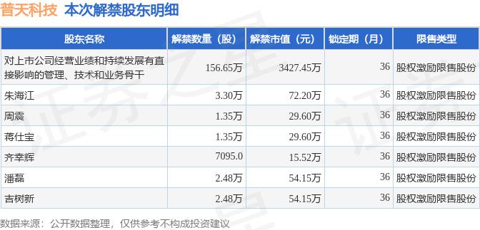 根据市场公开信息整理,普天科技(002544)于 6 月 13 日将有 168.31 万股限售股份解禁上市,为公司股权激励限售股份,占公司总股本 0.25%。最近一年内,该股累计解禁 37.35 万股,占总股本的 0.05%。本次解禁后,公司还有 1439.42 万股限售股份,占总股本 2.11%。具体如下图所示: