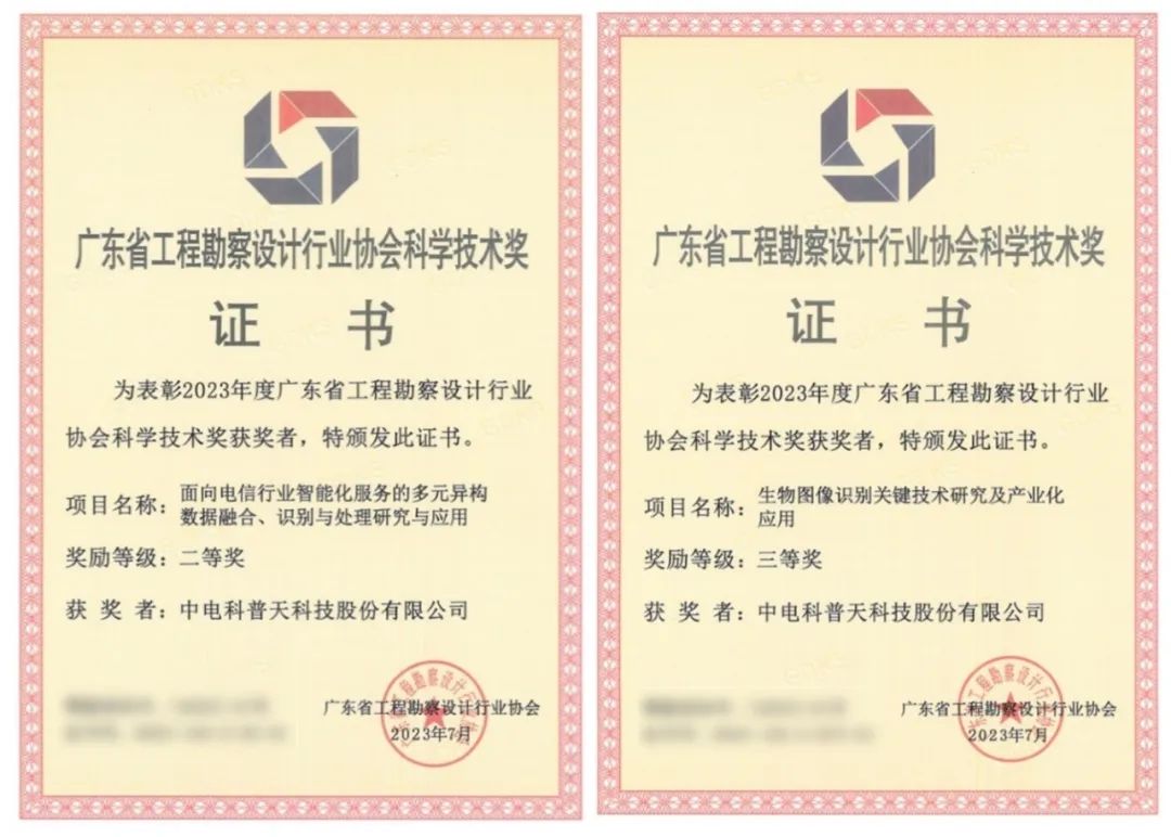 近日,普天科技作为主要承担单位参与的《面向电信行业智能化服务的多元异构数据融合、识别与处理研究与应用》、《生物图像识别关键技术研究及产业化应用》2个项目分别荣获“2023年度广东省工程勘察设计行业协会科学技术奖”二、三等奖。