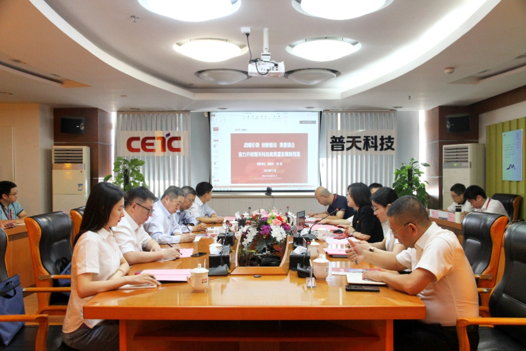 随后,公司党委副书记、总裁朱忠芳对普天科技整体改革发展情况进行了重点汇报。徐艳围绕“一个方案、四个结合、七个重点、十个专题”对公司主题教育调查研究整体成果情况进行了总结汇报。班子成员围绕战略规划引领、运营管控体系、科技创新体系、人才工作体系、质量管控体系、风险防控体系、融入数字经济等七个重点专题,结合工作实际,逐一交流调研成果,全面梳理问题,提出解决对策,徐艳围绕班子调研情况,提出了后续落实的思路举措。领导班子将进一步把调研成果转化为解决问题、推进工作的思路办法和解决群众急难愁盼问题的具体举措,转化为推动发展、防范化解风险、落实全面从严治党要求的实际行动。