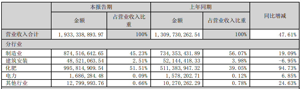 2022年半年报显示,东方铁塔化肥板块营收占总营收比重51.51%,已超过占比45.23%的制造业板块,成为公司第一大业务。