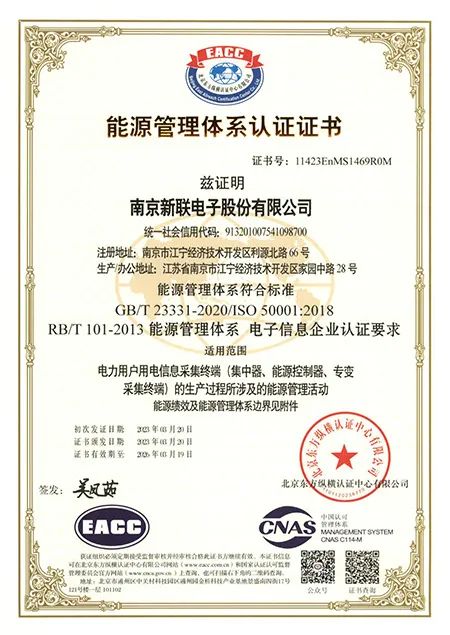 日前,新联电子电力用户用电信息采集终端(集中器、能源控制器、专变采集终端)系列产品获得能源管理体系认证,这是继获得碳足迹管理体系认证之后,公司在能源管理体系建设、助力“双碳”发展等方面又迈出的坚实一步。