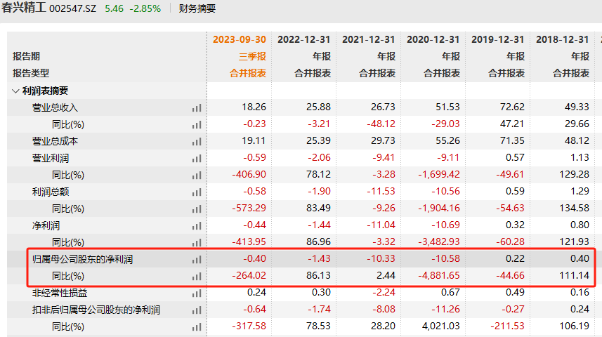 业绩方面,春兴精工发布的三季度报告显示,今年前三季度实现营业收入18.26亿元,同比下降0.23%;归母净利润为-4007.51万元,同比减少264.02%。