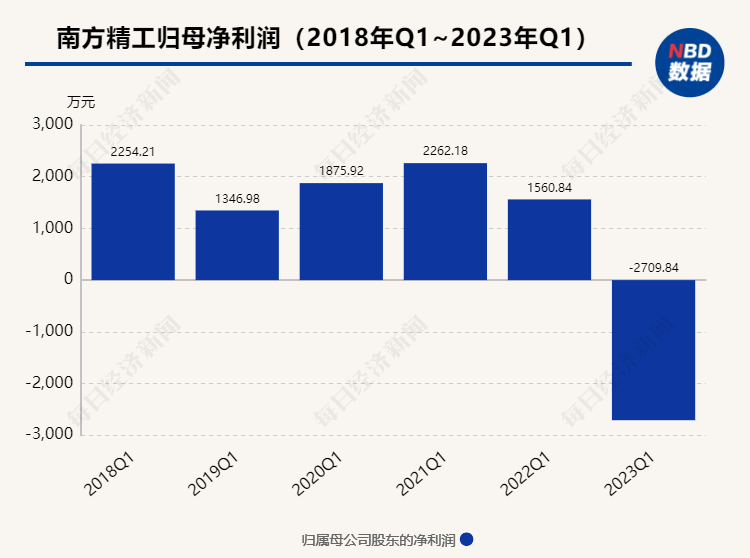 2023年一季度,南方精工实现营业收入1.33亿元,同比下降0.36%,实现归母净利润-2709.84万元,同比下降273.61%。南方精工表示,归母净利润下滑主要是由于报告期内所持江苏泛亚微透科技股份有限公司的股权公允价值变动收益波动所致。