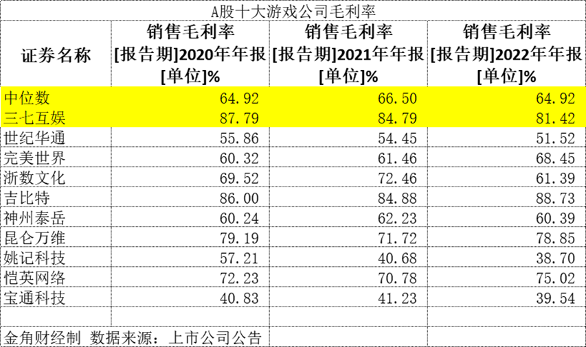 盈利指标方面,三七互娱毛利率下滑至81.42%,尽管依然很暴利且远高于头部企业中位数64.92%;