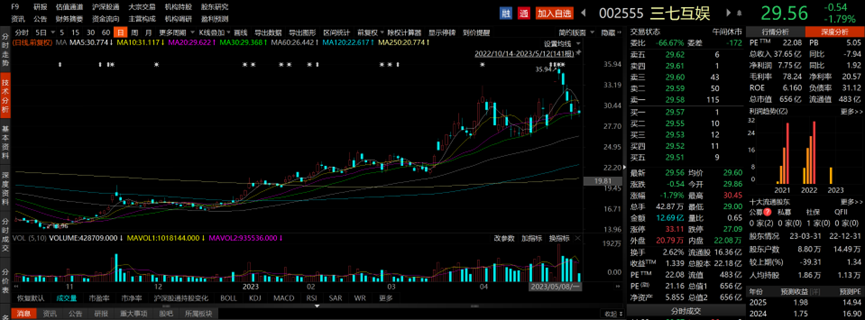 去年业绩一经公布后,三七互娱的炒作就有戛然而止之势,上演了一波“冲高回落”。截至发稿,该公司股价已较月初高位下跌17.75%。