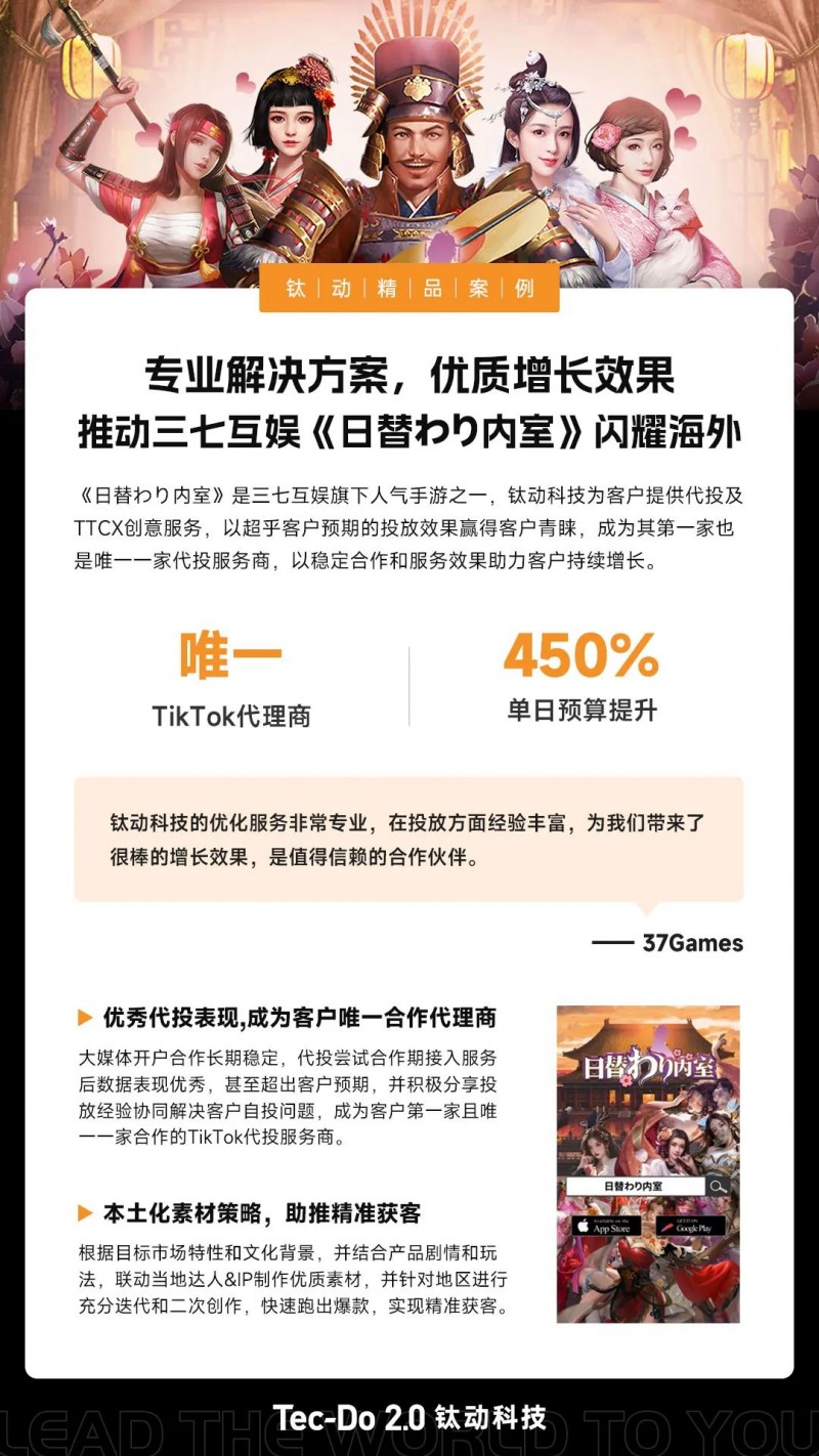 ¡¡¡¡îѶ¯¿Æ¼¼Ò»Ö±ºÍÈýÆß»¥Óé±£³Ö×ÅÁ¼ºÃµÄºÏ×÷¹ØÏµ£¬²¢ÔÚÓÎÏ·³öº£·½Ãæ³Áµí¶àÄêͶ·Å¾Ñé¡£»ùÓÚ¿Í»§ÐèÇó£¬îѶ¯¿Æ¼¼Ñ¸ËÙ³ÉÁ¢¿Í»§×¨ÏîС×飬¶Ô²úÆ·½øÐÐÈ«·½Î»µ÷ÑУ¬²ð½âÏÖ×´¼°Ä¿±ê£¬Öƶ¨Í걸µÄͶ·Å·½°¸¼°Ö´Ðмƻ®¡£Í¨¹ýרҵµÄͶ·ÅÓÅ»¯£¬°ïÖú¿Í»§ÔÚ³Á¼ÅÁ½ÄêµÄTikTokƽ̨ÉÏ´øÀ´ÁËÔ¶³¬Ô¤ÆÚµÄÈȶȡ£