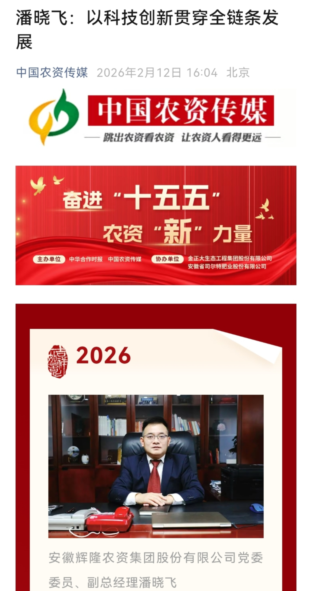 编者按:近日,中国农资传媒聚焦“十五五”规划开局启新的关键节点,对辉隆股份进行了深度报道,辉隆股份党委委员、副总经理潘晓飞接受采访。这既是对辉隆股份坚守为农初心、深耕主责主业的充分肯定,更是激励我们锚定高质量发展目标、勇担供销合作社系统农资企业标杆责任的重要动力。
