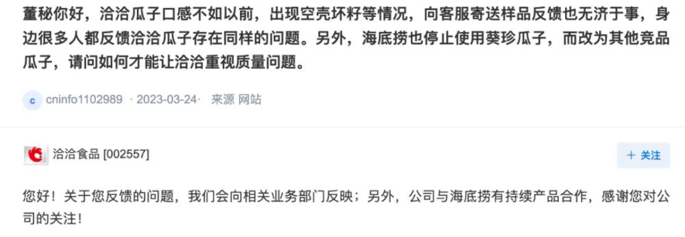 另一方面,投资者对公司的瓜子质量也表达了不满。
