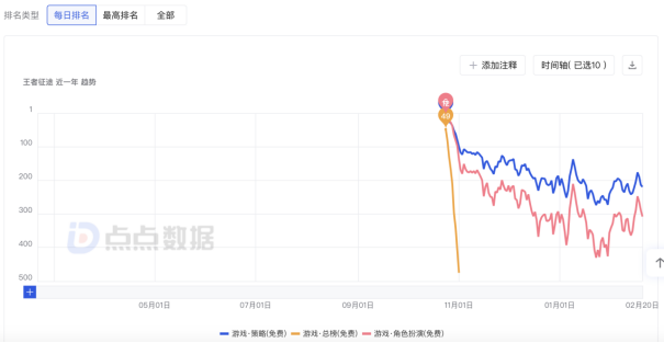 目前《王者征途》已于10月24日全平台上线。记者注意到,该款游戏在APP版本的表现远不及小程序版本。点点数据显示,《王者征途》在上线首日拿到国区iOS游戏免费榜49名的成绩后便急剧下滑,而公司的收入连增三个月后,目前已出现下滑。