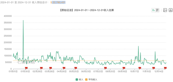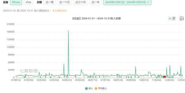 不过,七麦数据显示,2024年以来,《原始征途》国服iOS端收入在1月出现一次飙升之后,后续数据走向稳定。2024年,该游戏的收入预估为 2278.04万美元,较2023年的5159.26万美元,同比下滑56%。