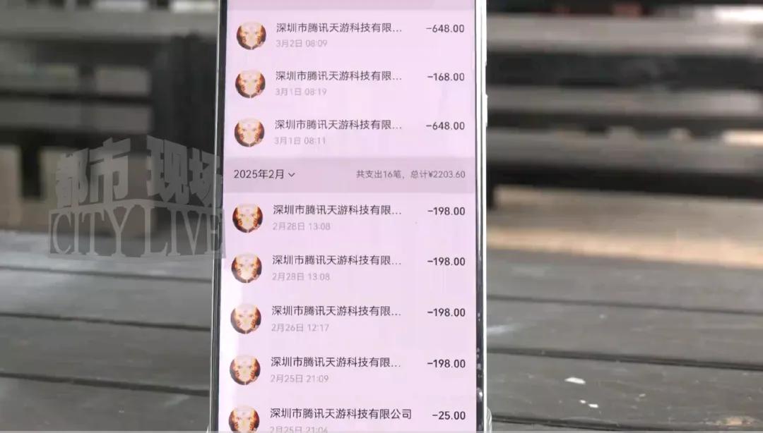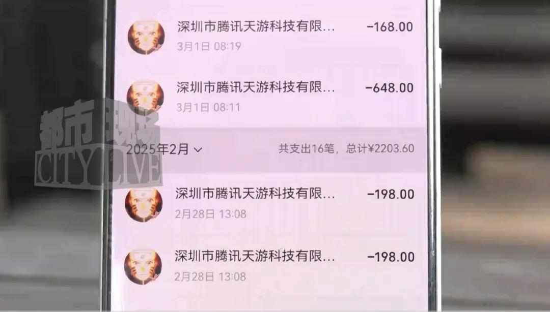 经过仔细核对,孩子的充值大多是68元、128元、198元等固定档位,涉及火影忍者、太空杀、第五人格等多款游戏,收款方包括深圳市腾讯天游科技有限公司、巨人网络游戏平台等。其中腾讯平台充值约5300元,巨人网络近3000元,仅太空杀一款游戏就有多笔98元、648元的大额支出。