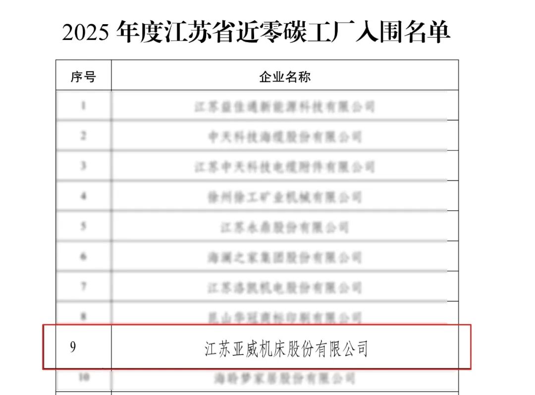 日前,江苏省工信厅公示了30家江苏省零碳(近零碳)工厂入选名单, 亚威股份 成功入围。