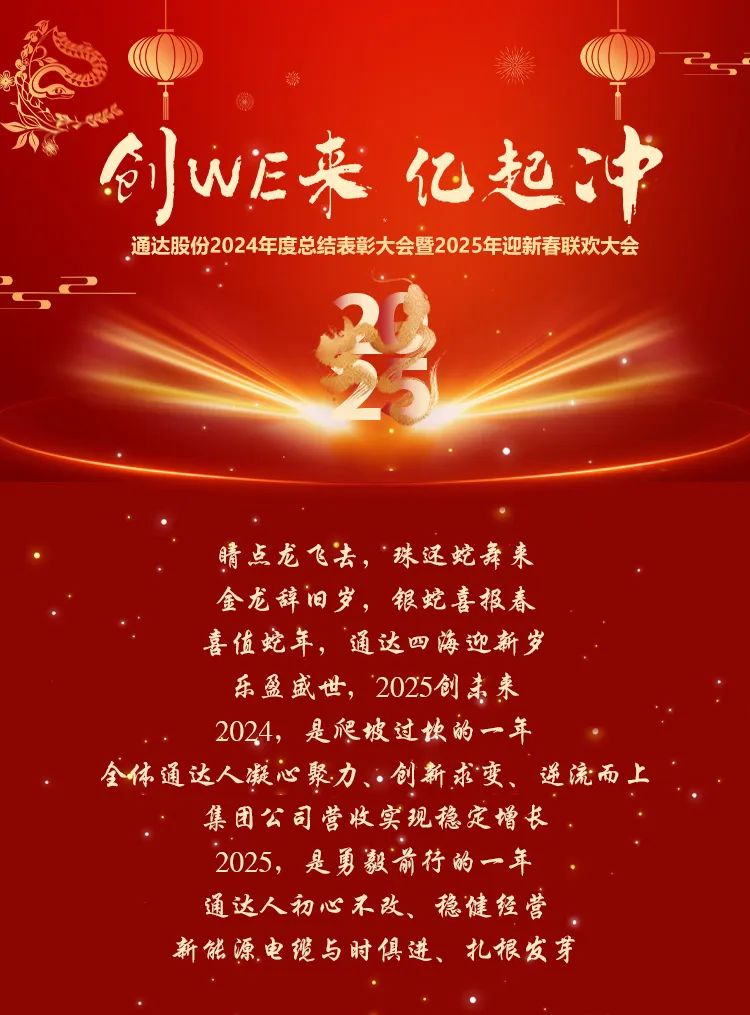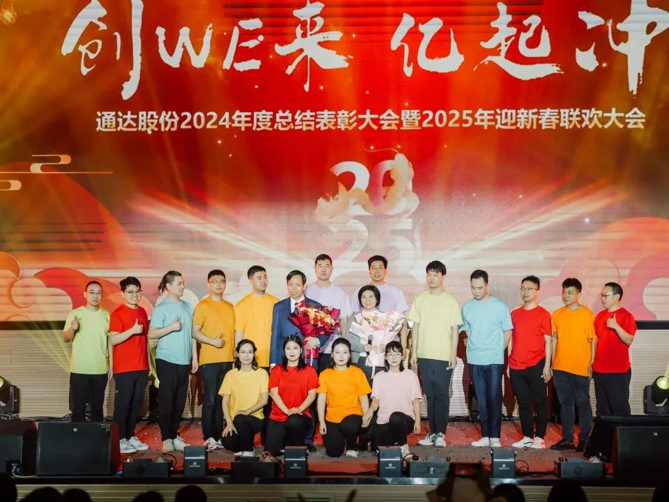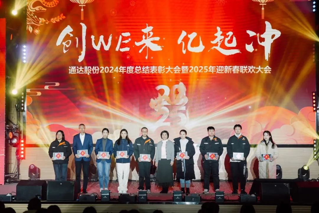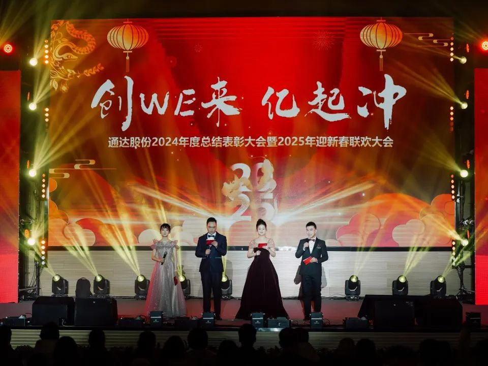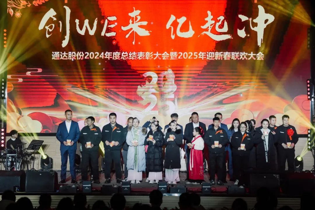 1月24日上午,通达股份隆重举办2024年度总结表彰大会暨2025年迎新春联欢会。大会上总结经验,表彰先进,歌舞、相声、小品等精彩节目让广大场内和线上的观众连连叫好,现场抽奖环节更是引爆全场。董事长马红菊、副董事长史家宝、总经理曲洪普、副总经理史永伟、副总经理刘志坚、生产副总陈少国、河南通达新材料有限公司总经理陈浩哲、河南通达久通电缆有限公司总经理赵大贝、河南通达宏基科技有限公司史梦晓董事长等领导及全体员工参加了本次大会。