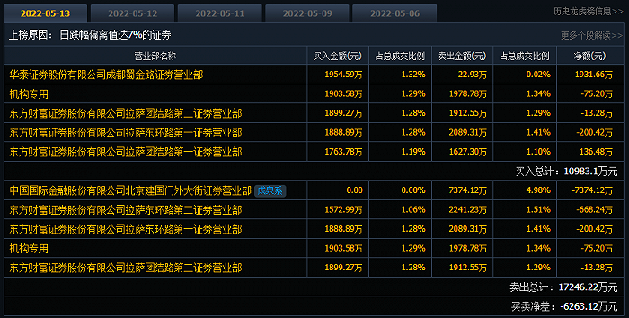 图:徐家汇5月13日龙虎榜数据图源:iFind