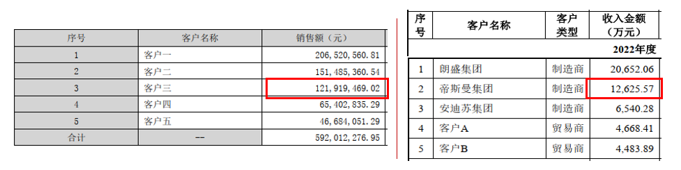 其次,发行人业务对于境外销售依赖程度较大,且相较于境内客户其境外客户集中度明显较高,在近年来地缘关系错综复杂、国际航运运费价格波动加剧,而发行人产品其大宗商品属性较强的情况下,其境外业务的抗风险能力就估值之家看来也并不高。报告期内,发行人境外销售收入占比均超过整体营收的五成,2022年其营收占比更是接近六成。通过将审核问询函回复与发行人年度报告进行比对,2022年其前五大客户当中就有4家为境外客户,且NipponChemical IndustrialCo.、客户A均为报告期内方才开始合作客户。此外,估值之家还发现对于帝斯曼集团所披露销售金额数据在两份报告中存在不一致情况,却并未查见发行人对此数据差异进行具体解释说明。