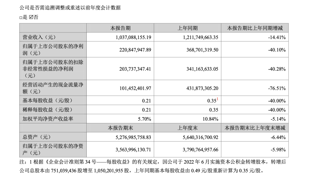 8月24日,上海百润投资控股集团股份有限公司(以下简称“百润股份”)(002568)发布《2022年半年度报告》显示,上半年实现营业收入10.37亿元,同比下降14.41%;归属于上市公司股东的净利润为2.21亿元,同比下降40.1%;经营活动产生的现金流量净额为1.01亿元,同比下降76.51%。其中,预调鸡尾酒(含气泡水等)实现营业收入8.66亿元,同比下降17.99%。