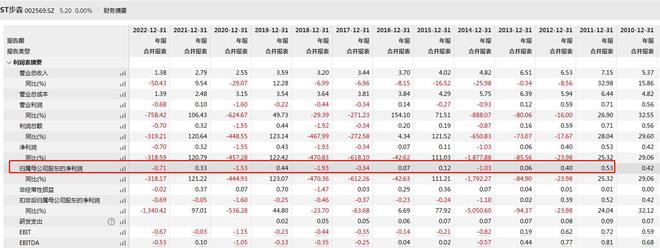 财务数据显示,自上市以来,ST步森业绩持续承压。2011年至2022年,有6年盈利,5年亏损。其中,盈利最高为2011年的0.53亿元,亏损最高为2018年的1.93亿元。