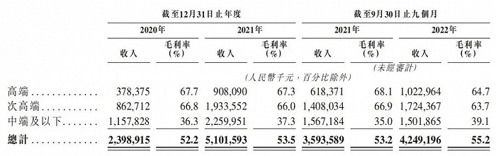 2017年至2022年三季度,公司毛利率从60.12%降至35.17%,市场份额早已不复当年。
