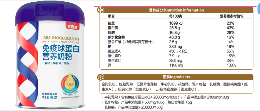 在“顶格消化”方面,针对大多数国人有着乳糖不耐受的问题,贝因美免疫球蛋白奶粉添加了乳糖酶。