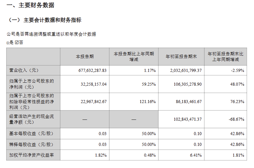 图片来源:贝因美官方三季度财报