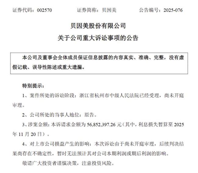 现金流紧张的局面,部分可归因于近年几起失败的投资与合作,导致了大量资金的无效沉淀与消耗。2021年,贝因美向黑龙江丰佑麻类种植有限公司支付了5000万元工业大麻专利定金,后因合作方未履行义务而陷入诉讼,涉案金额涉及定金及损失。2025年12月,贝因美向法院提起诉讼,要求解除协议并返还5000万元款项及利息,涉案金额达5685.24万元。