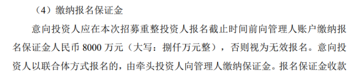 与此同时,意向投资人需具备雄厚的资金实力。公告明确要求,投资人须在招募报名截止时间前,向管理人指定账户缴纳8000万元人民币的报名保证金,未按时足额缴纳视为报名无效。此外,投资人应支付的重整对价须在重整计划获得法院裁定批准之日起45日内全部支付到位。