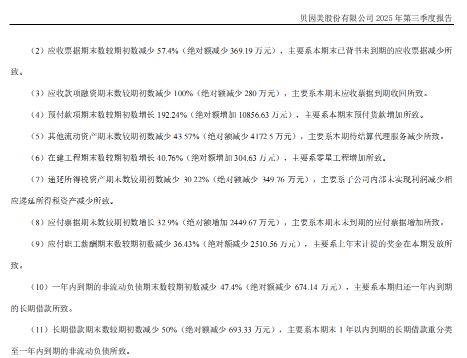 截至2025年9月末,贝因美总负债22.60亿元,资产负债率55.95%,但较上年度末略有优化。拆分来看,公司短期借款余额11.58亿元,虽较年初的12.19亿元略有下降,但刚性偿债压力依然存在。