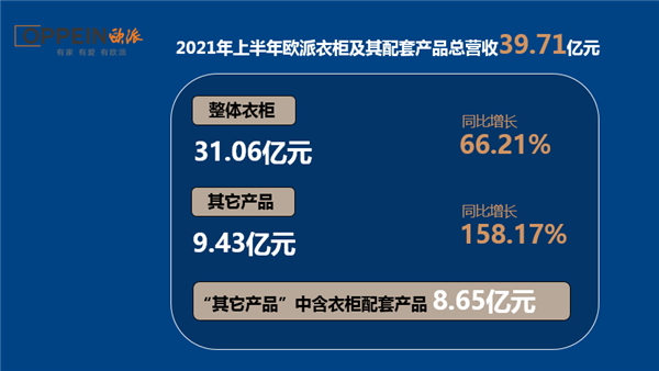- 2021年上半年,欧派衣柜及其配套总营收39.71亿元