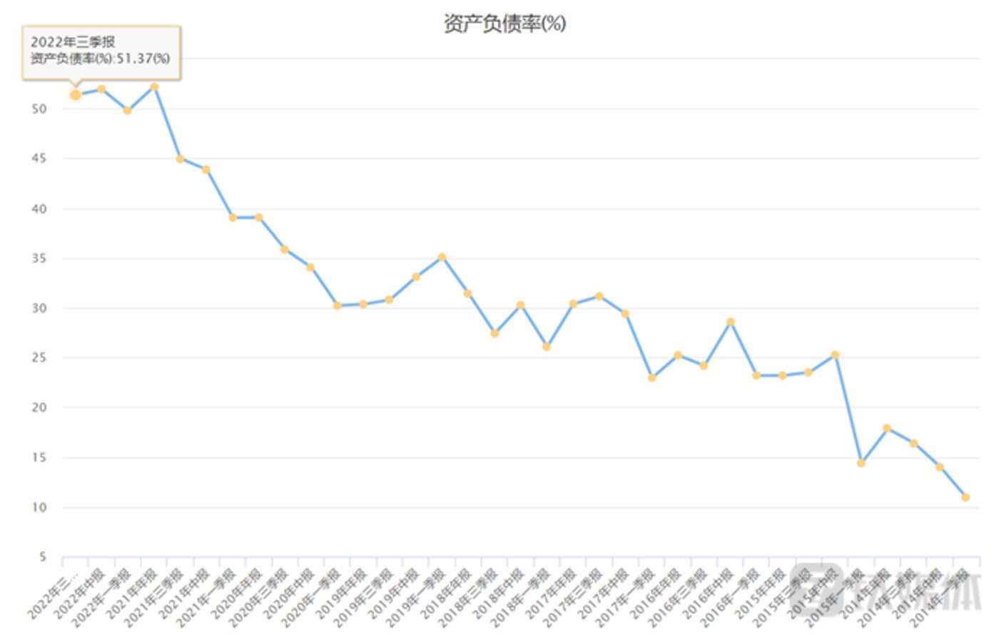 由此导致净利润蒸发9成的同时,索菲亚营收以24.59%的增速正式跨越百亿门槛,两者叠加,催生出索菲亚一年后的财务现状:业绩增长盈利回稳,3季度合同负债10.46亿元,超过2021年全年,其代价是快速堆高的长短债推动负债率攀升,带息债务占比较两年前翻番。