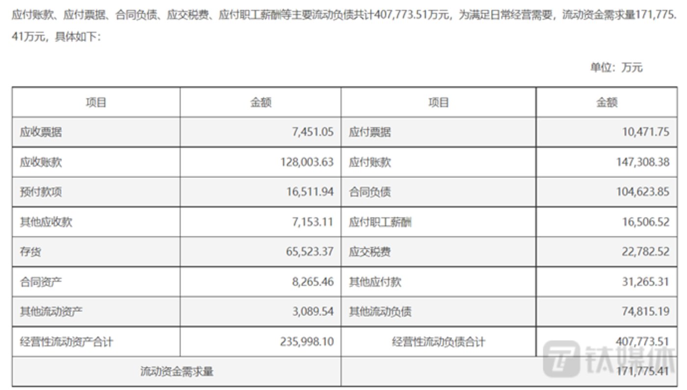 这个简单的“3=1-2”引起了钛媒体APP的注意,因为《再融资新规》落地后,一般情况下上市公司提出融资申请时,测算营运资金缺口的方法会先采用销售额比率法,基于未来几年的销售收入规模来预测营运资金需求,随后测算经营性流动资产和经营性流动负债规模,索菲亚缺失了第一步。