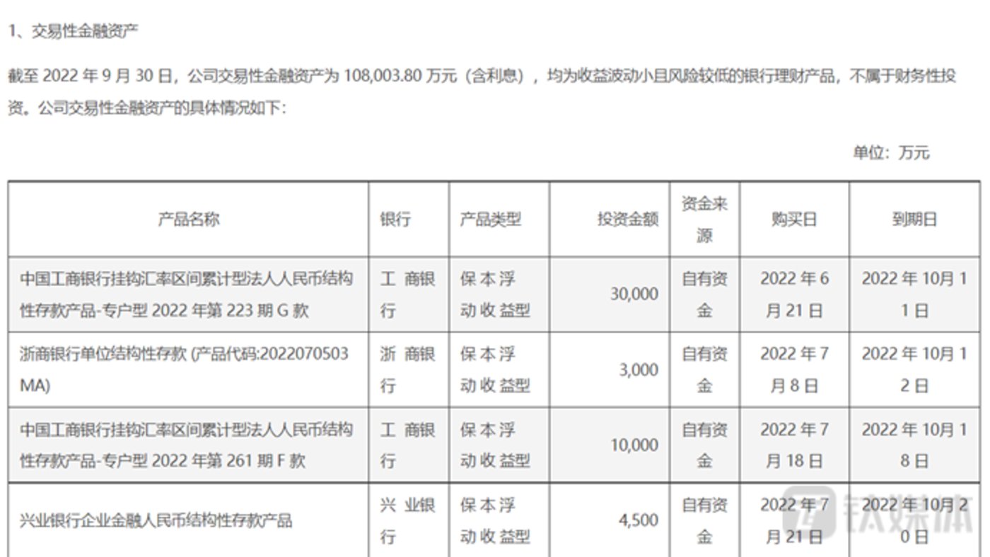 更何况索菲亚账上还有接近10亿的交易性金融资产,比行业老大欧派家居还高出3亿元,占归属于母公司净资产的16.28%,公司表示,这些都是收益波动小且风险较低的银行理财产品,不属于财务性投资。