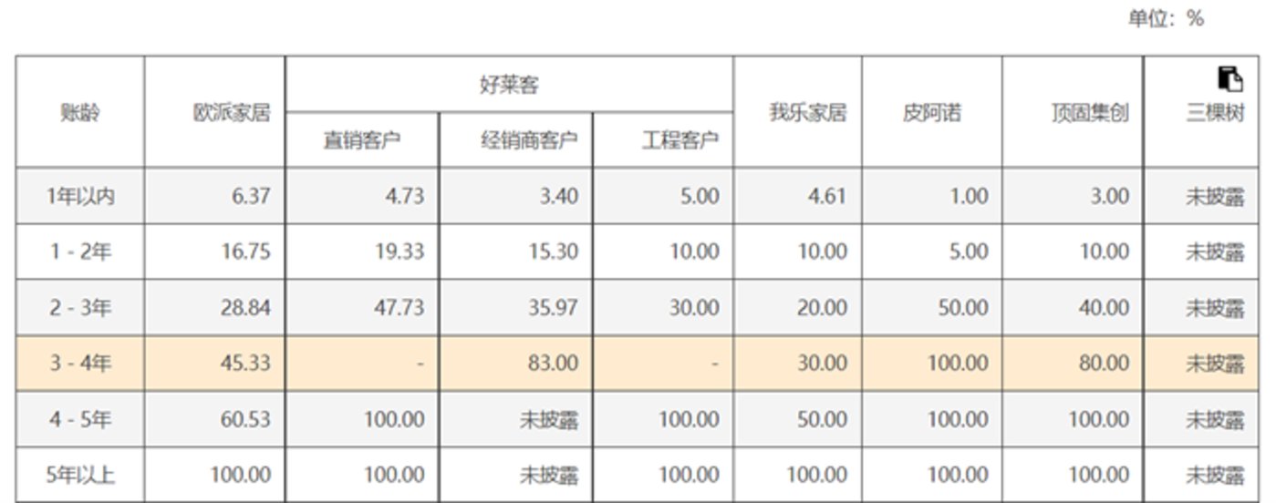 与同行上市公司相比,索菲亚的坏账计提比例明显偏低。公司解释为,客户历史信用较好,应收账款账龄一般在一年以内,信用风险相对较小。