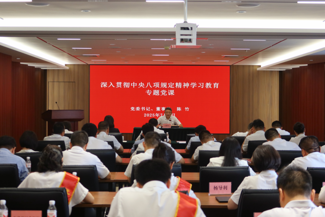 陈竹在党课中,系统回顾了党的作风建设发展历程和历史经验,深刻阐释了中央八项规定精神的现实意义和实践要求,深入分析了企业面临的新形势、新任务、新挑战。他强调,要学深悟透,以思想破冰引领行动突围;要刀刃向内,以问题导向深化自我革命;要融入发展,以作风转变赋能价值创造。他要求,始终以中央八项规定及其实施细则精神为思想自觉和行动标尺。要坚持“2+1”战略发展路径,做强公司核心竞争力;要坚持转作风树新风,提升公司经营质效;要坚持长效机制建设,护航公司高质量发展,为公司奋进新征程提供坚强作风保障。