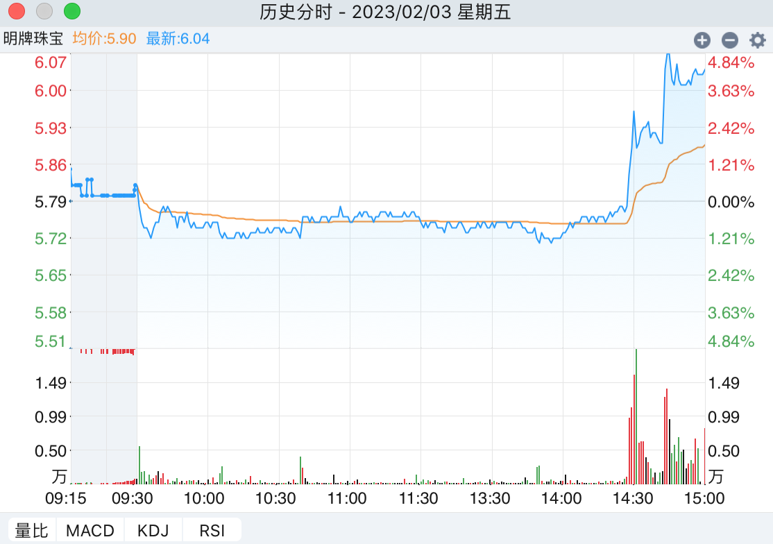 一来,监管层留意到2月3日收盘前半小时明牌珠宝就已经上涨,且异动明显,而公告是2月3日晚间发布的。