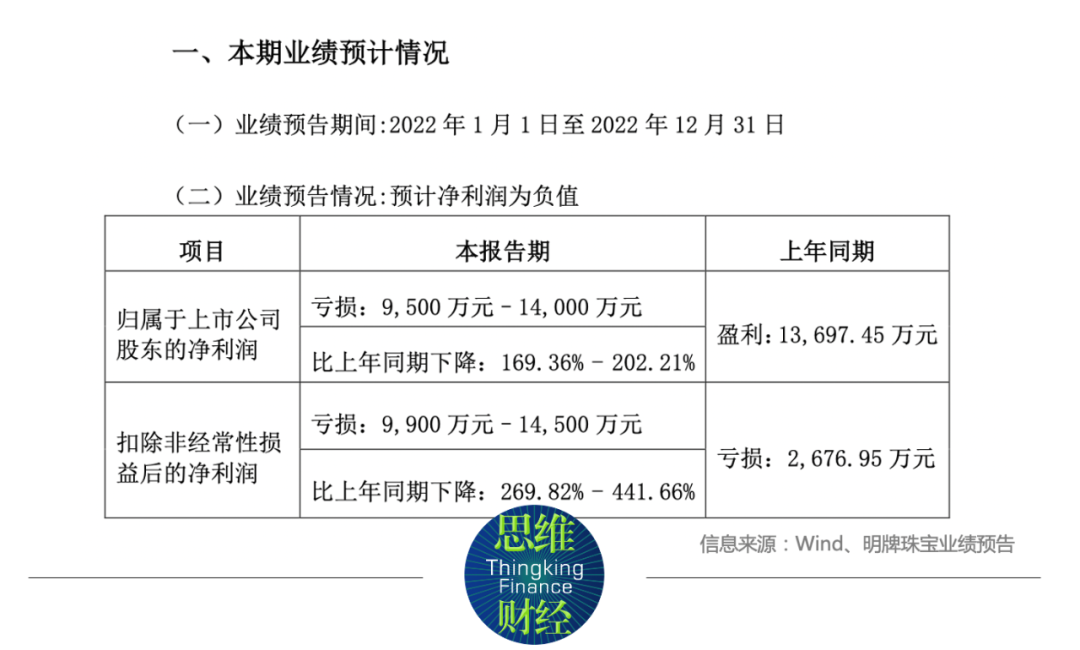 对于业绩变动的主要原因,明牌珠宝在公告中解释称,主要源于对瑞丰银行长期股权投资拟计提减值准备。因瑞丰银行股价大幅下跌,公司持有的瑞丰银行股权投资存在减值迹象,公司对其进行减值测试,预计瑞丰银行股权投资对公司业绩的影响金额约为-1.32亿元,属于经常性损益项目。