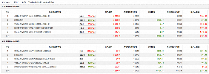 具体来看,华鑫证券上海陆家嘴证券营业部、深股通专用分别买入2668.56万元、2391.78万元;安信证券广州猎德大道证券营业部、深股通专用分别卖出6260.43万元、2679.19万元。