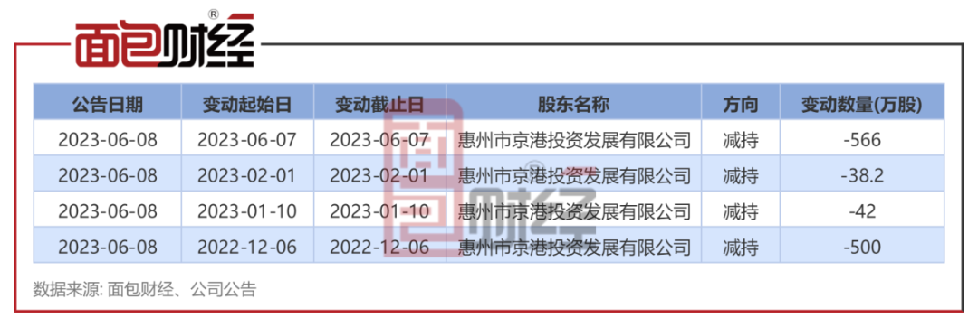 具体来看,公司控股股东京港投资分别于2022年12月、2023年1月、2023年2月、2023年6月通过大宗交易减持公司500万股、42万股、38.2万股、566万股,合计减持1146.2万股。