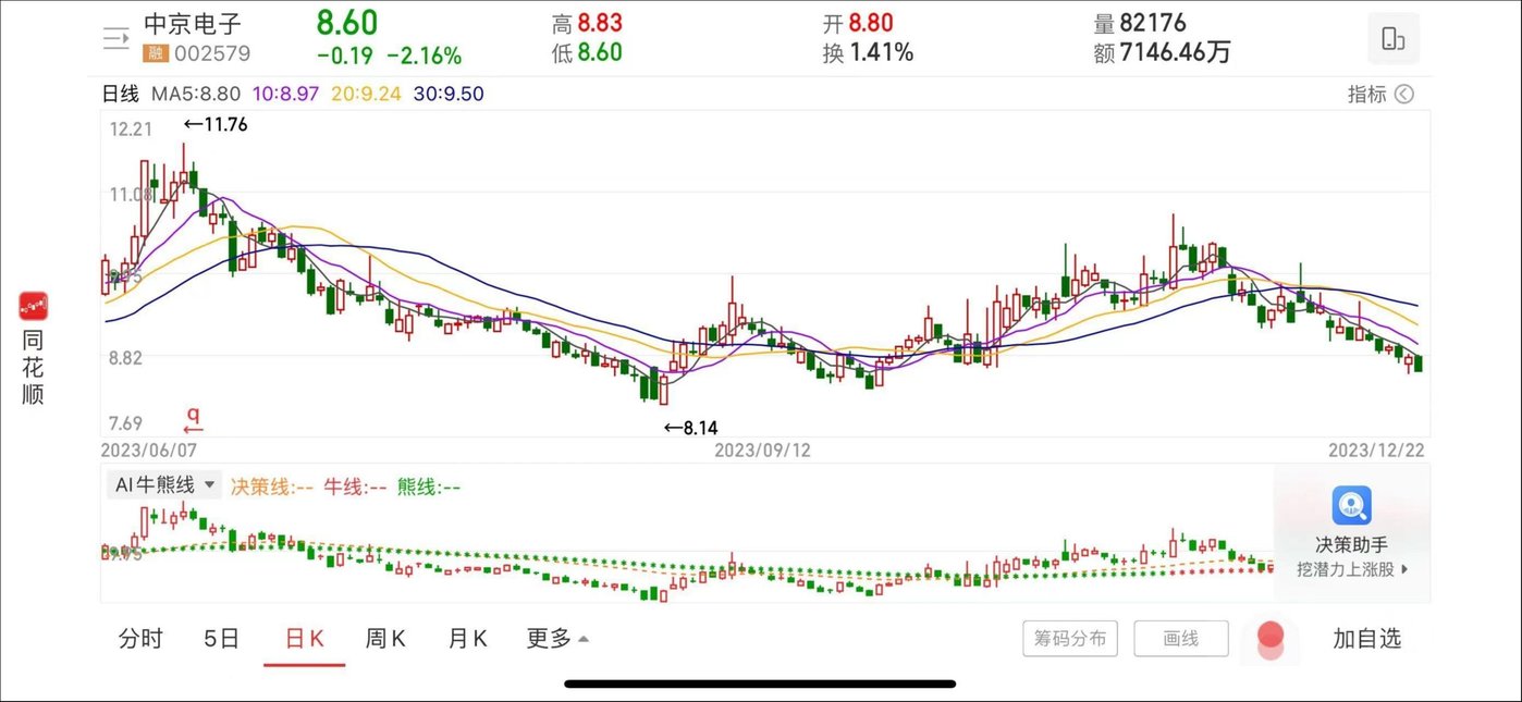 二级市场方面,近半个月以来,公司股价整体处于下滑趋势,截至12月22日收盘,公司股价报收8.6元,跌幅2.16%。