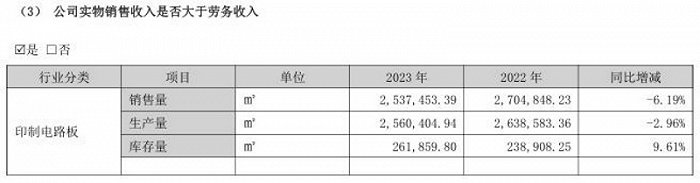 而在原有产能方面,中京电子在其2023年年报中并没有具体披露相关情况。但从印制电路板的生产量、销售量、库存量的数据看,2023年度产量、销量分别比上年度减少2.96%和6.19%,从而出现了库存量同比增长9.61%的情况。