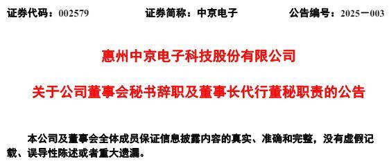 中京电子进一步指出,自2025年3月27日起,将由公司董事长杨林暂时接管董事会秘书的职责。杨林拥有丰富的职业背景,包括在广东省广州军区部队服役的经历,以及在广东省惠州市财校和深圳市直属机关的工作履历。他还曾担任广东天元电子科技有限公司总经理、深圳市京港投资发展有限公司总经理、惠州中京电子科技有限公司董事长等职务。在2020年11月公布的《2020衡昌烧坊?胡润百富榜》中,杨林凭借22亿元的财富位列第2204位。