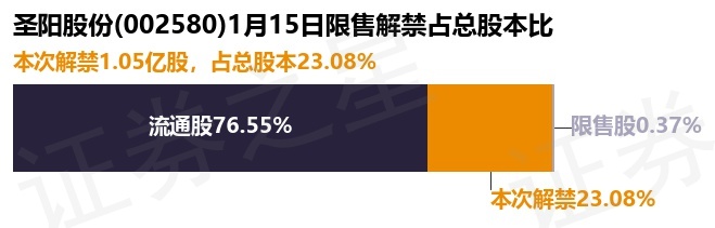 证券之星消息,根据市场公开信息整理,圣阳股份(002580)于1月15日将有1.05亿股限售股份解禁上市,为公司定向增发机构配售股份,占公司总股本23.08%。本次解禁后,公司还有168.93万股限售股份,占总股本0.37%。具体如下图所示: